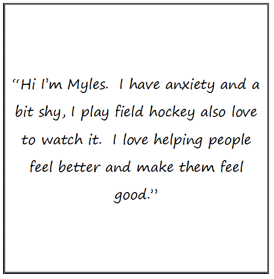 "I feel I belong because I have friends and get to learn lots of things." Myles